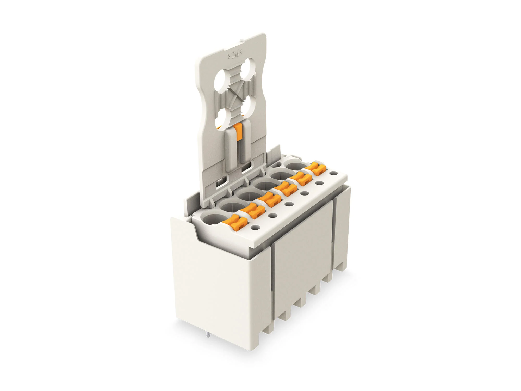 For power electronics, WAGO’s range contains two families of PCB terminal blocks and a pluggable connector system for cross sections up to 25 mm2 and nominal current up to 76 A.
